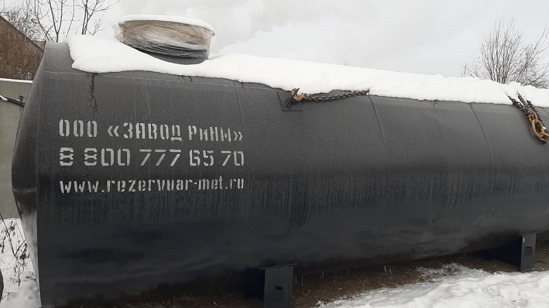 Горизонтальный цилиндрический резервуар, располагается на нескольких стойках (не менее двух), снабжается специальным ограждением (панели), увеличивающим устойчивость конструкции. Если емкость располагается на земле – необходимо обеспечить устойчивое положение, а также защиту от механических повреждений и воздействия коррозии. От ударов защищает ограждения, тогда как против коррозии эксплуатируются специальные составы, наносимые на поверхность резервуара. Емкость, размещаемая под землю, имеет свои преимущества: